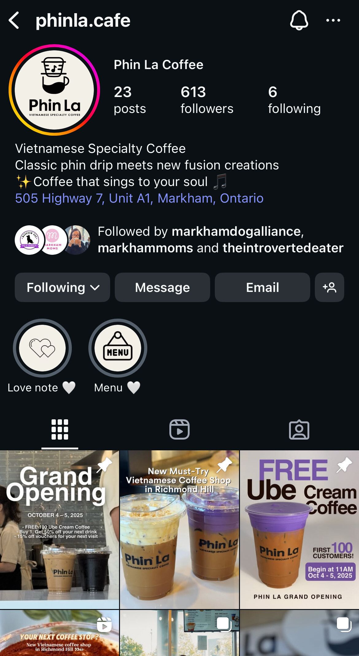 Craving Vietnamese coffee? ☕ Good news, Phinla just opened last weekend! Stop by for unique drinks like Ube Cream Coffee and Egg Coffee, and treat yourself to something delicious. 📍 505 Highway 7, Unit A1, Markham, ON L3T 7T1
