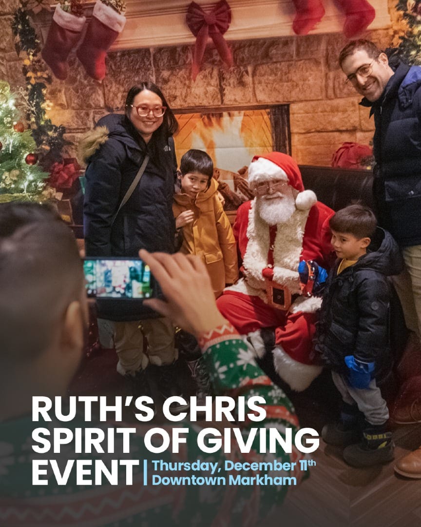 Alright everyone, mark your calendars for Thursday, December 11th, from 5–7 PM at Ruth’s Chris Steak House in Downtown Markham for some holiday fun!
